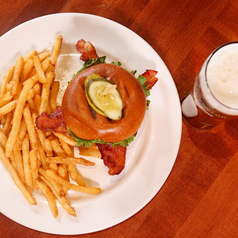 Served on a brioche bun w/ lettuce, tomato, onion, dill pickle, CB sauce & fries | Add Cheese, Bacon, Mushrooms +$1.50 each